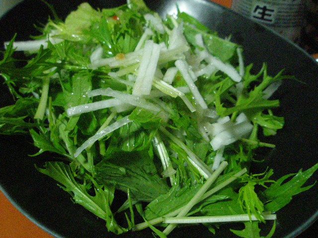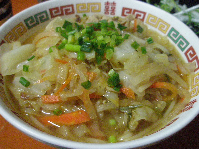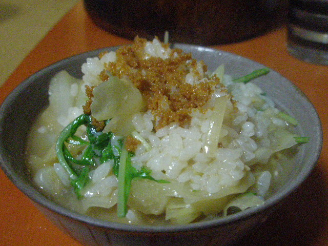 をゆっくり炒め、キャベツ、大根、にんじん、豚肉