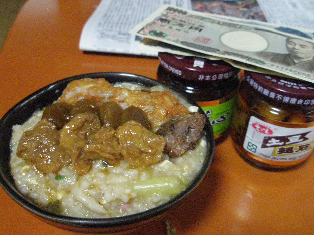 (台湾の菜心と土豆の瓶詰め、鰯のへしこをのせたもの)