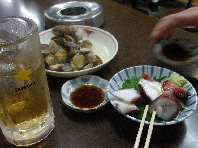 957夜 ⑤ウーロンハイ タコブツ あさり酒蒸し@だるま
